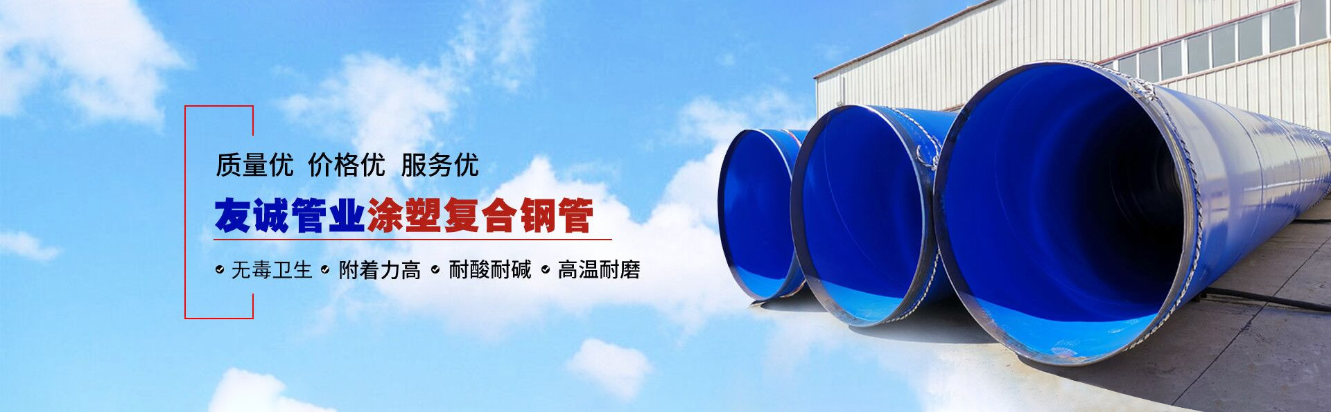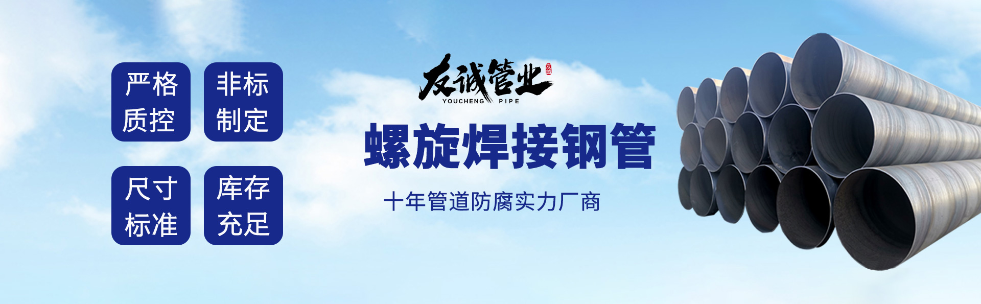 滄州友誠(chéng)管業(yè)有限公司是一家專(zhuān)業(yè)從事生產(chǎn)防腐涂塑管道及管件于一體的大型企業(yè)。公司注冊(cè)資金8600萬(wàn)元,位于中國(guó)管道生產(chǎn)基地—河北鹽山縣,近靠京滬高速、榮烏高速、黃石高速30公里,高鐵滄州西站40公里,天津國(guó)際機(jī)場(chǎng)、濟(jì)南遙墻機(jī)場(chǎng)150公里,為客戶來(lái)訪及業(yè)務(wù)發(fā)展提供了便利的交通條件。        鋼管系列:螺旋鋼管、無(wú)縫鋼管、ERW直縫焊管、JCOE埋弧焊直縫鋼管、熱鍍鋅鋼管。        涂塑系列:內(nèi)外涂塑鋼管、涂塑復(fù)合鋼…… 了解更多